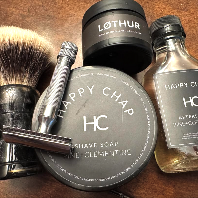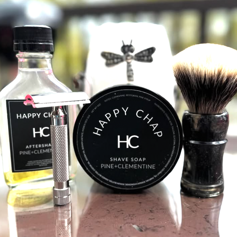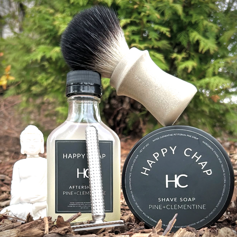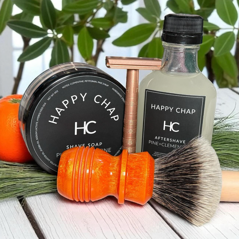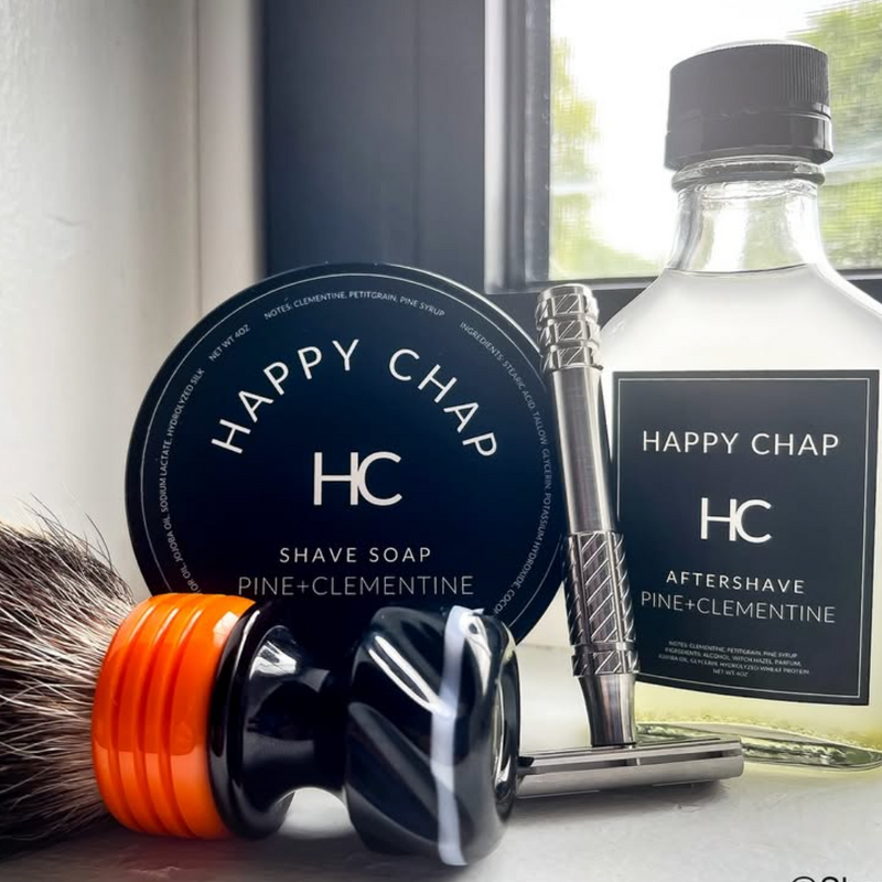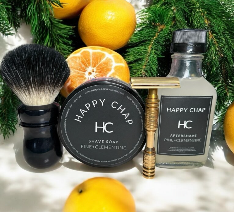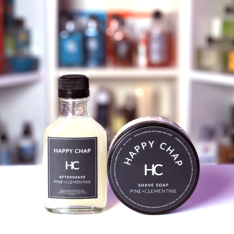 Fresh, bright, and unmistakably sharp. PINE+CLEMENTINE is a bold scent built for warmer days—clean, crisp, and full of contrast. It opens with the juicy brightness of Clementine, delivering a sweet citrus punch that feels instantly energizing. Petitgrain, distilled from the leaves and twigs of the bitter orange tree, adds a dry, herbaceous edge with its woody-green bite, grounding the citrus with a hint of complexity. Pine Syrup rounds it out with smooth, resinous depth and a whisper of forest sweetness. This is summer for the well-groomed—calm, confident, and clean-cut. Do your face a favor and shave with Happy Chap.